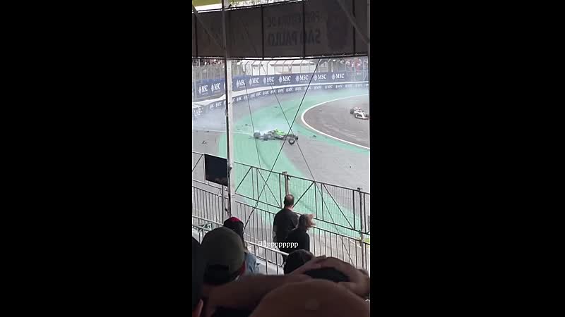 Beelden uit publiek van zware crash Gabriel Bortoleto in sprintrace Brazilië