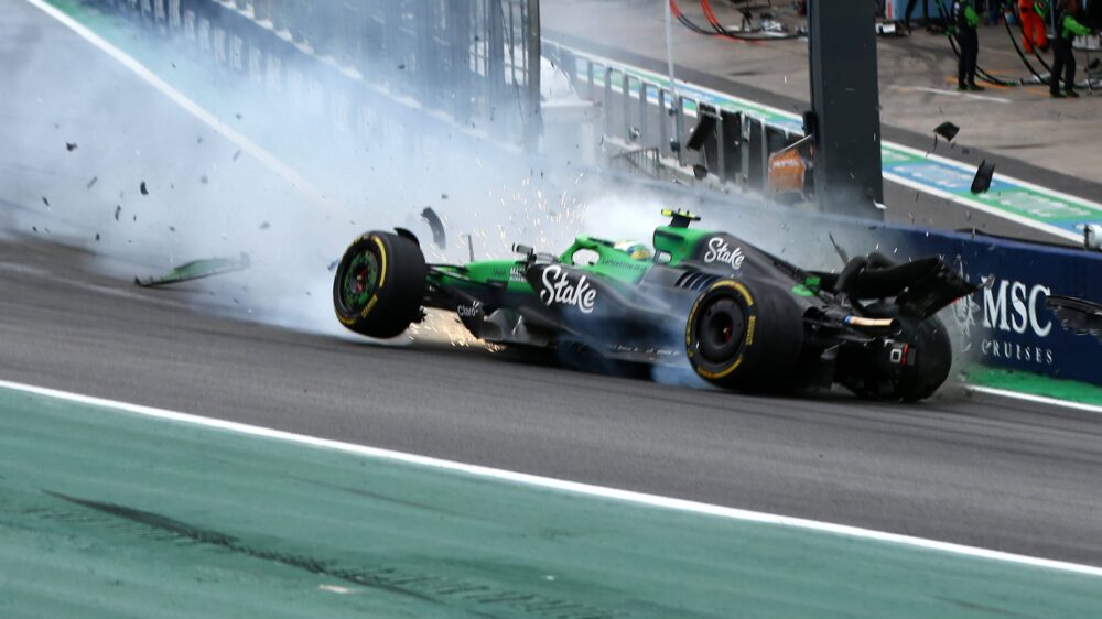 In de slotfase van de sprintrace op Interlagos ging het gisteren flink mis voor local hero Gabriel Bortoleto. De Braziliaan verloor bij het aanremmen van de eerste bocht de controle over zijn Sauber, preciés op het moment dat de baan door nattigheid tricky was geworden.