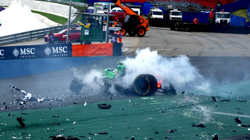 In de slotfase van de sprintrace op Interlagos ging het gisteren flink mis voor local hero Gabriel Bortoleto. De Braziliaan verloor bij het aanremmen van de eerste bocht de controle over zijn Sauber, preciés op het moment dat de baan door nattigheid tricky was geworden.