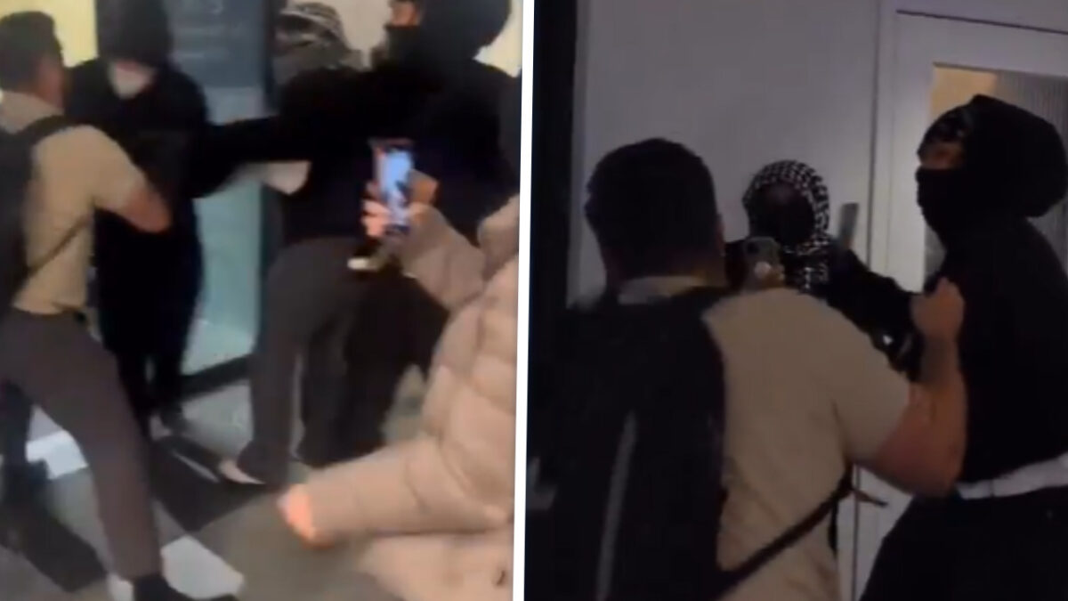 Veteraan duwt Palestina-activisten recht door glazen deur bij Israël-bijeenkomst
