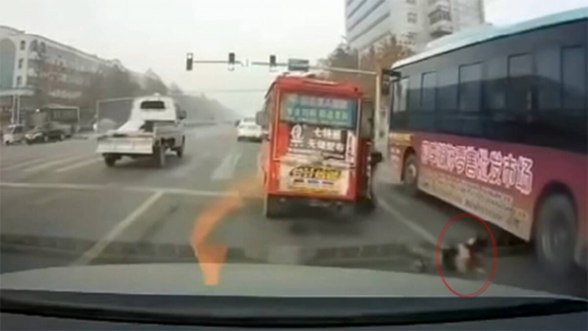 Peuter valt uit een rijdende bus en wordt nét niet overreden door stadsbus