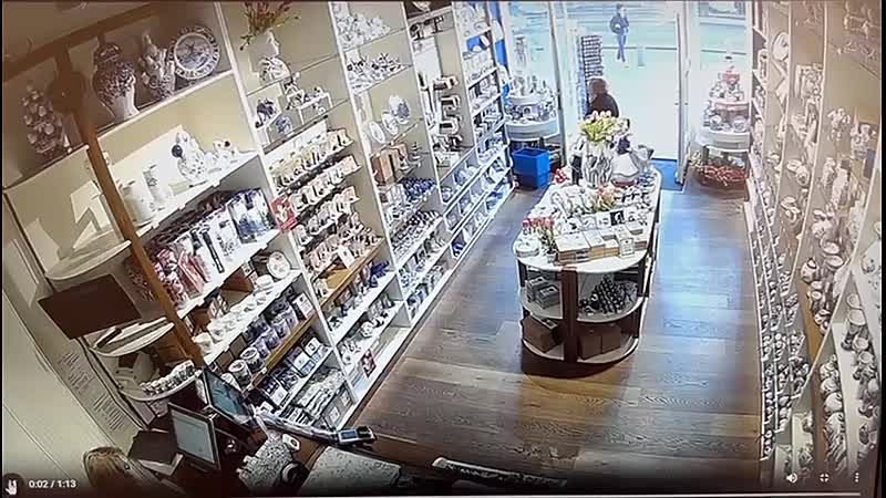 Blijkbaar was Leeuwarden niet zijn première, maar het vervolg. De video die nu opduikt, is namelijk ouder en laat zien dat onze verwarde allesvernietiger al eerder actief was, maar deze keer in een souvenirwinkel vol breekbaar Delfts Blauw in Amsterdam.