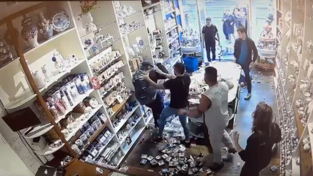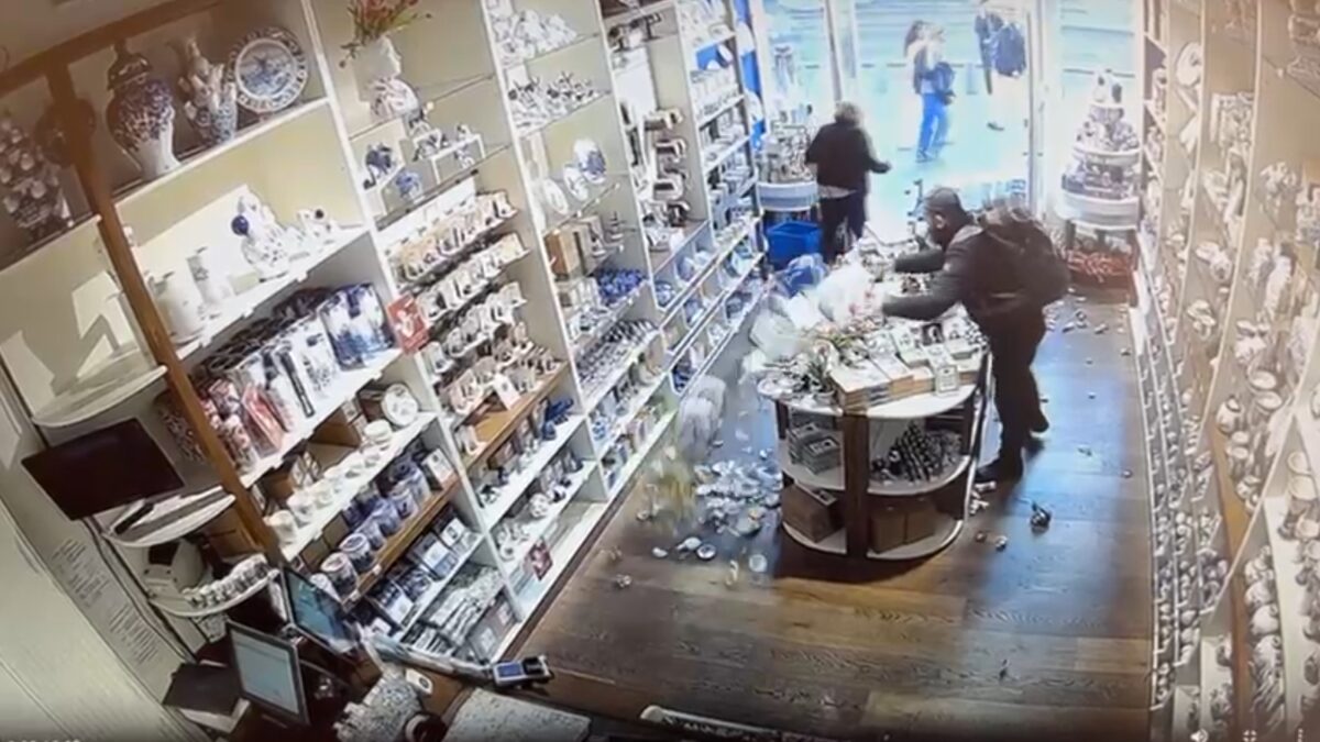 Blijkbaar was Leeuwarden niet zijn première, maar het vervolg. De video die nu opduikt, is namelijk ouder en laat zien dat onze verwarde allesvernietiger al eerder actief was, maar deze keer in een souvenirwinkel vol breekbaar Delfts Blauw in Amsterdam.