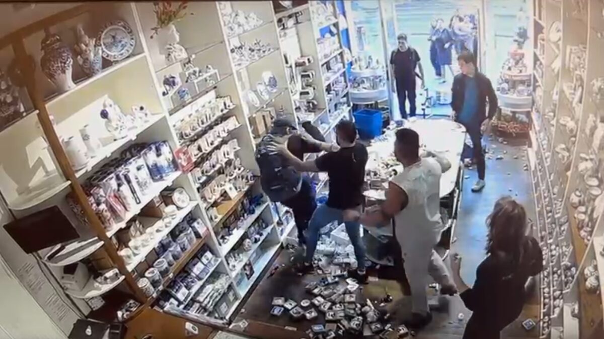 Toeristen keken toe hoe de man een complete porseleinoorlog ontketende, tot omstanders besloten dat het welletjes was geweest.