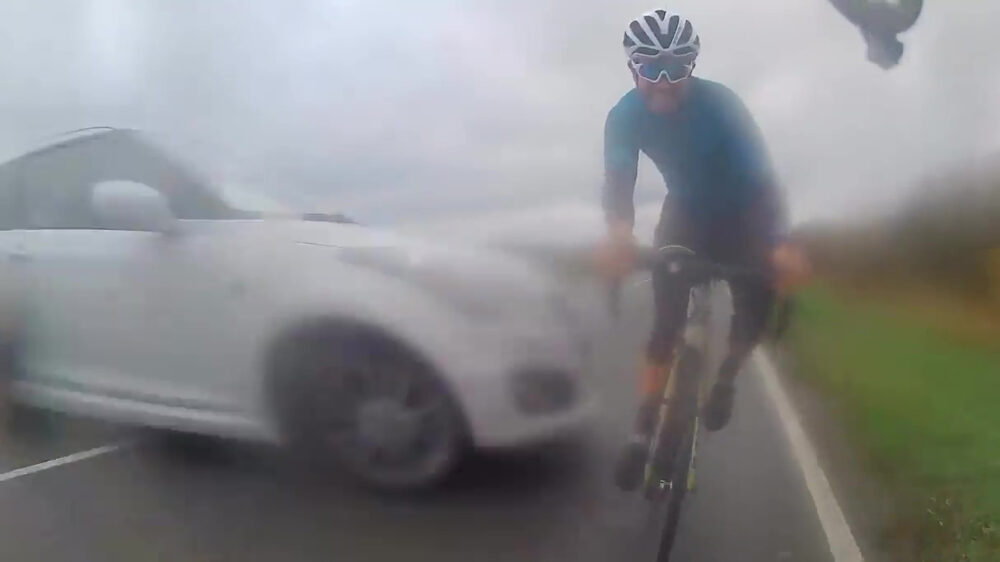 George Fox fietste vorige week nietsvermoedend door Northamptonshire toen een auto besloot spontaan dwars over het asfalt te rijden.