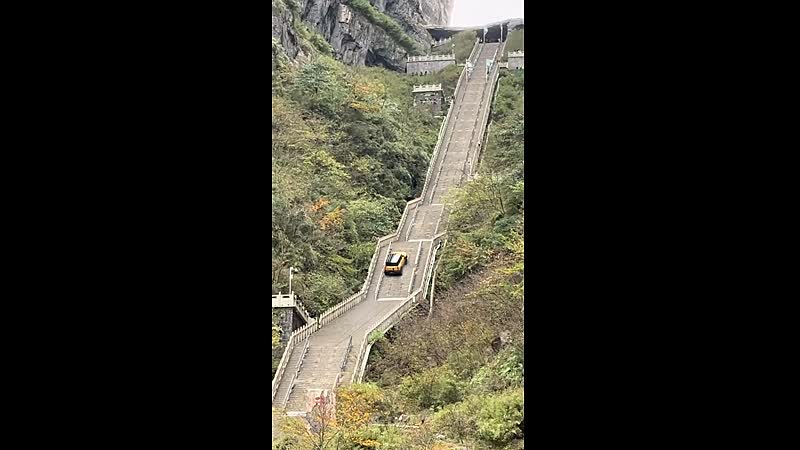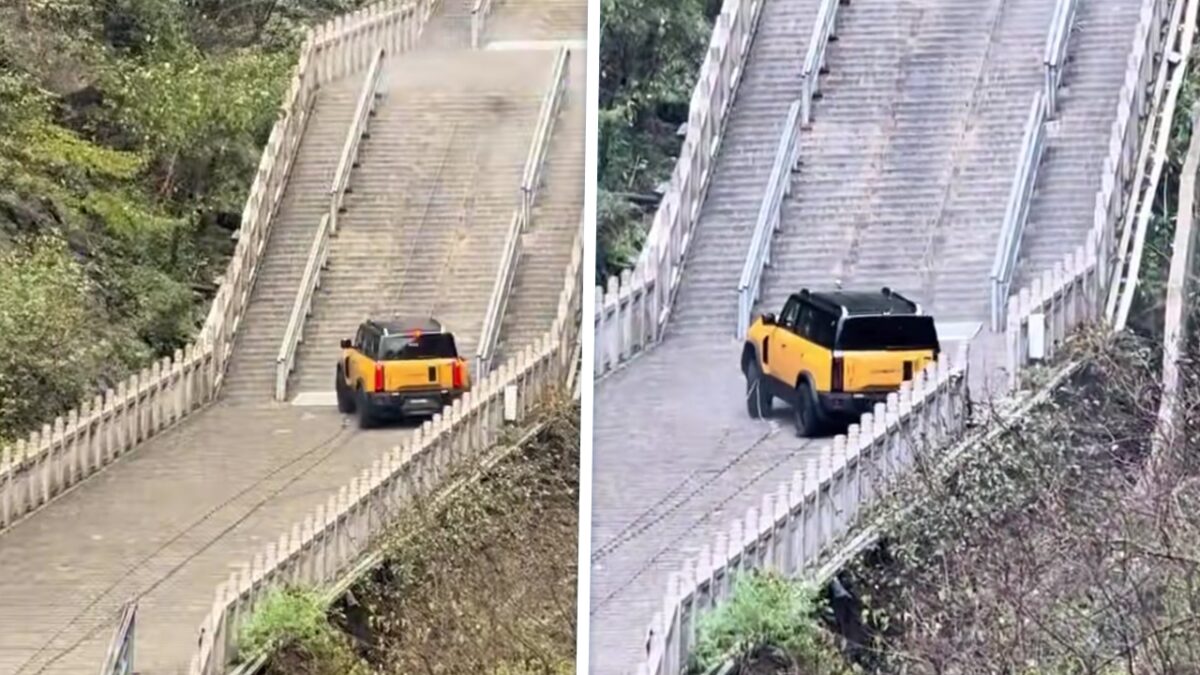 Een stunt met een SUV op de trap van Tianmen Mountain in China is gisterochtend compleet uit de bocht gevlogen. De gele X3L van autofabrikant Qijun moest shinen op de 999 treden tellende ‘Heaven’s Stairway’, maar gleed halverwege terug en klapte vol op een hek. Dat de trap een helling van 45° en soms zelfs 60° heeft én kletsnat was, hielp duidelijk niet mee.