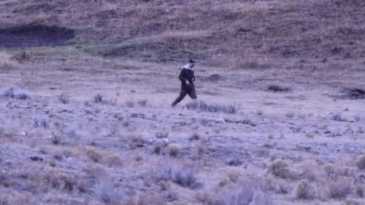 In plaats van weg te rennen, wat voor de hand ligt als vijf wolven je komen halen, draait hij zich om en loopt er weer recht op af. Wanneer de wolven echt dichtbij komen, haalt de man een spuitbus pepperspray tevoorschijn. Niet dat het indruk maakt, want de wolven blijven hem volgen terwijl hij zich de helling af terugtrekt. Dan maar hopen dat dit niet zijn laatste wandeling was.