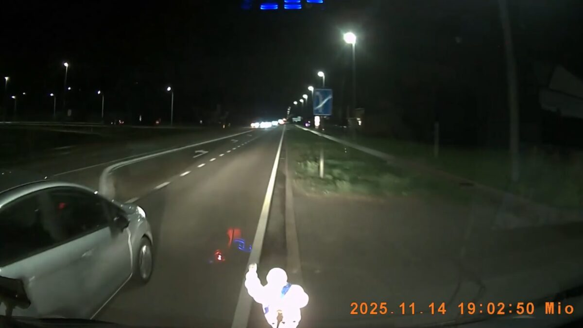 Onze chauffeur reed rustig van de snelweg af toen er ineens iemand van links voor hem schoot, waardoor hij met al zijn gewicht vol in de ankers moest. Even later gaat ze ook nog eens hard op de rem staan. De bestelcoureur is er klaar mee, knalt zijn bak erlangs en ineens is het klaar. Ze bleef netjes op afstand alsof er nooit iets gebeurd was.