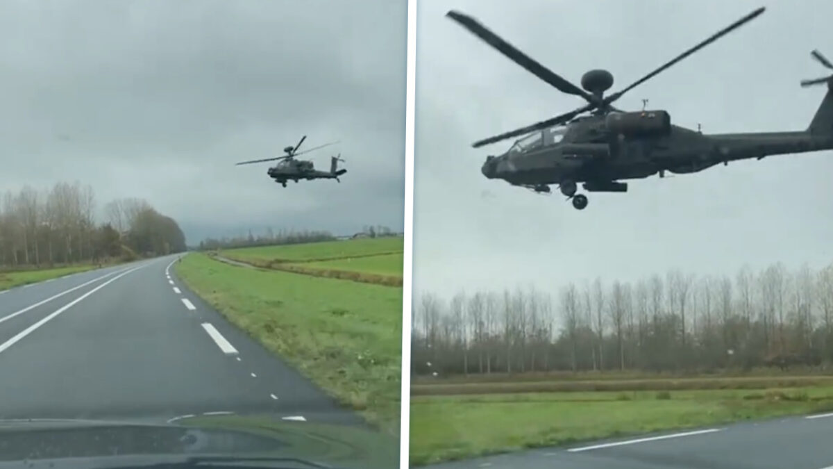 Beelden: Apache scheert 'rakelings' over provinciale weg bij Zuilichem