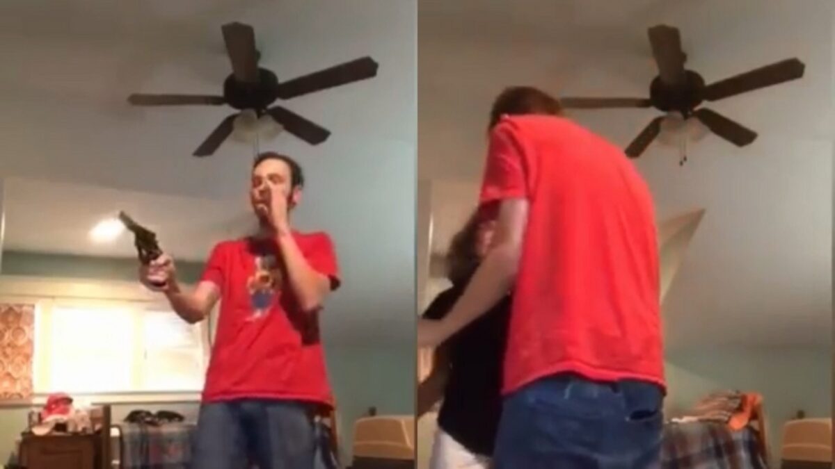 Gangsta rapper doet stoer voor zijn webcam en schiet per ongeluk zijn pistool af
