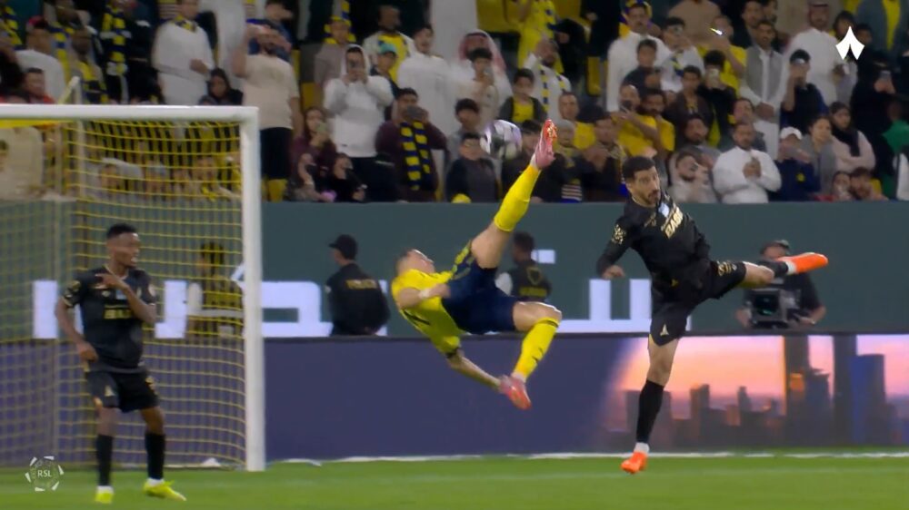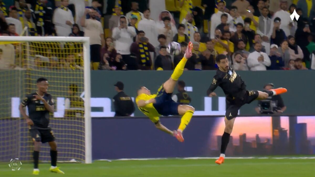 Cristiano Ronaldo is inmiddels veertig, maar dat maakt voor hem blijkbaar helemaal niets uit. In Saoedi-Arabië maakt hij furore voor Al Nassr met een omhaal die zo uit een FIFA-trailertje lijkt geknipt.