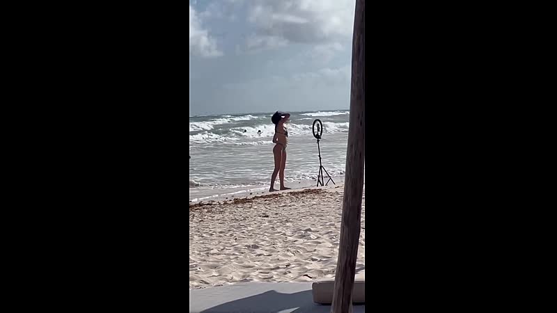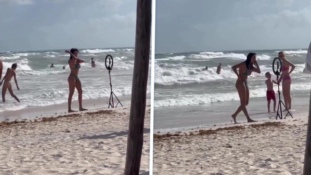 Influencer danst op 't strand terwijl voorbijgangers verbaasd toekijken