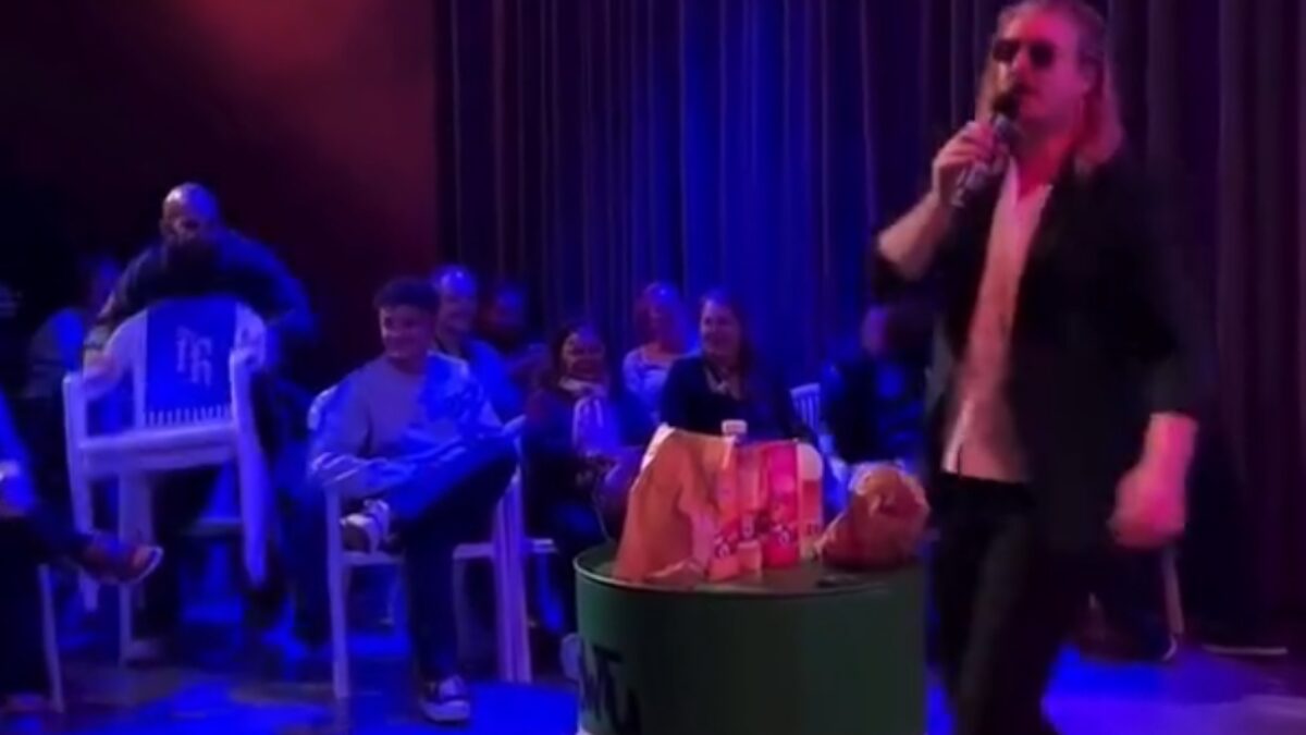 Surinamer in het publiek wordt pislink en gooit stoel naar cabaretier Virals