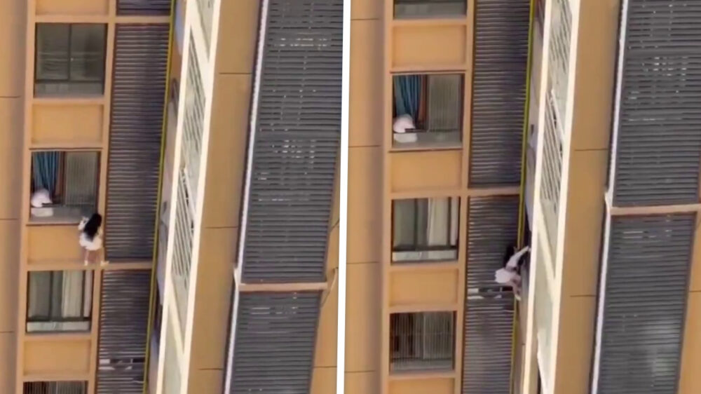 Als je vreemdgaat, neem je risico’s, maar deze keer ging het niveau meteen naar standje survival. Zodra de echte vrouw opdook, dook de minnares het raam uit op de tiende verdieping en klauterde langs de gevel naar een ander raam alsof dat de normaalste zaak van de wereld was. Spider-Man is er niets bij!