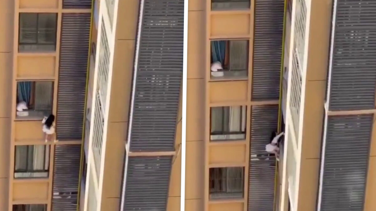 Als je vreemdgaat, neem je risico’s, maar deze keer ging het niveau meteen naar standje survival. Zodra de echte vrouw opdook, dook de minnares het raam uit op de tiende verdieping en klauterde langs de gevel naar een ander raam alsof dat de normaalste zaak van de wereld was. Spider-Man is er niets bij!