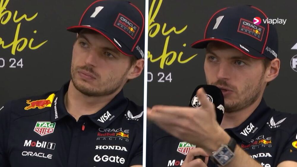 Max Verstappen was zichtbaar over de zeik toen een Britse journalist over zijn zogenaamde “verloren titel door Barcelona” begon. De viervoudig wereldkampioen knalde na Zandvoort richting een monstercomeback, maar moest uiteindelijk toch buigen voor kersvers wereldkampioen Lando Norris.
