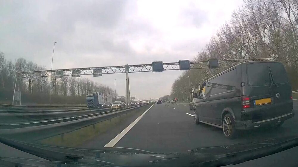 Bestelbus maakt gevaarlijke inhaalactie en trapt daarna vol op de rem