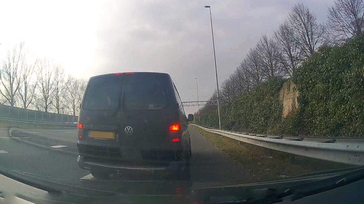 Bestelbus maakt gevaarlijke inhaalactie en trapt daarna vol op de rem