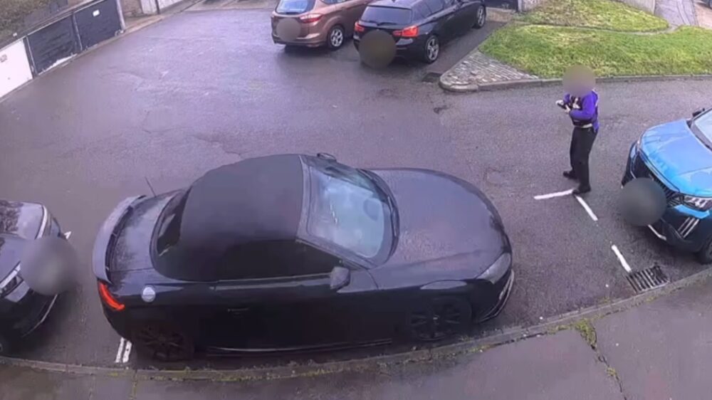 Volgens de eigenaar stond de auto daar van 22 tot 26 november, precies terwijl hij op vakantie was. Daardoor zag hij op afstand via zijn camera hoe een aannemer een nieuw vak schilderde, inclusief blauwe lijntjes, keurig rondom zijn nog geparkeerde auto.