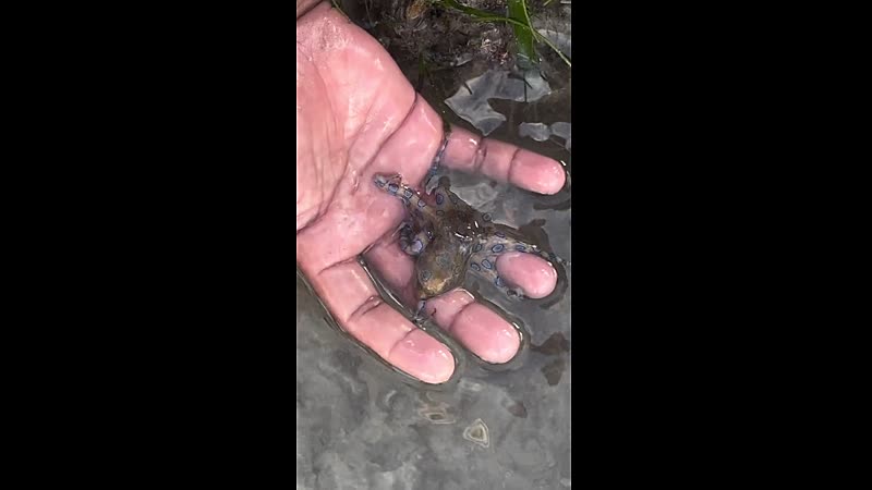 McConnell raakte het beestje even aan en maakte er een video van, onwetend dat z’n nieuwe oceaanbuddy hem met gemak naar het hiernamaals had kunnen sturen. De toerist had trouwens geluk dat hij niet gebeten werd, want een prik van deze octopus is binnen een paar minuten fataal. Er is geen tegengif. Gewoon klaar, afgelopen. En dat voor een beestje dat in je handpalm past.