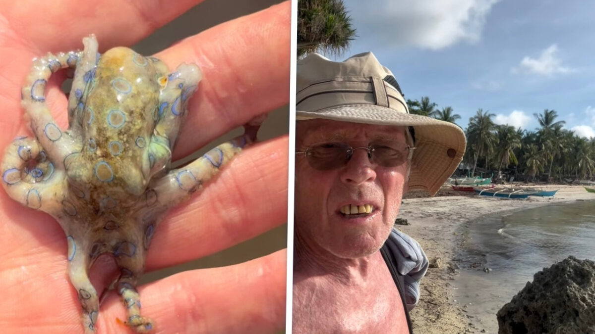 Een Britse toerist heeft op het nippertje z'n leven gehouden tijdens een uitstapje in de Filipijnen. Andy McConnell, expert bij Antiques Roadshow en normaal meer bezig met kristallen karaffen dan met levensgevaarlijke dieren, stuitte tijdens een wandeling op het strand op een schattige baby-octopus. Alleen bleek die dus blauwgeringd te zijn. Voor wie geen biologieles heeft gehad: da’s een van de giftigste dieren op aarde.