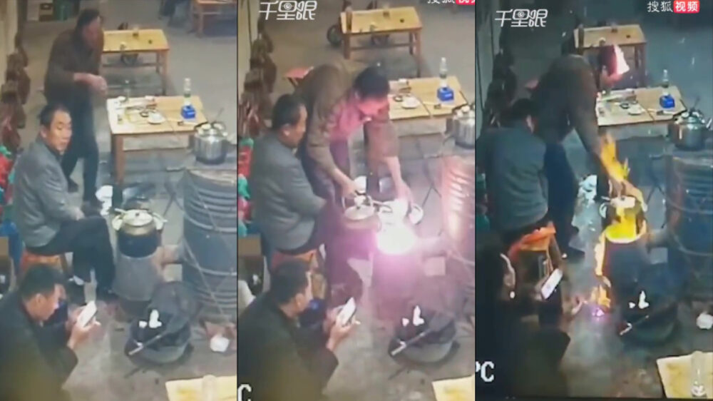 Naar verluidt mikte deze knakker (rijst)wijn in de kookpot, waardoor hij voorlopig niet meer naar de kapper hoeft.