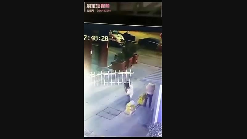 Aziatische dame besluit wraak te nemen op de slagboom die haar op haar hoofd raakte