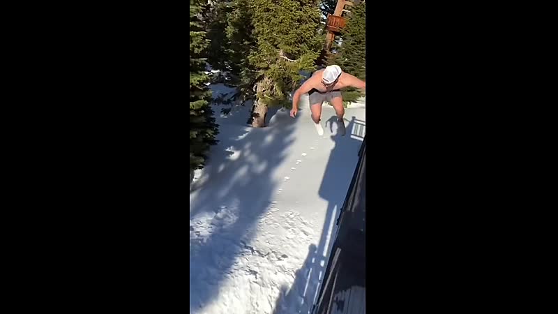 Sommige mensen denken bij sneeuw aan poeder, zachtheid en een veilige landing. Deze kerel dacht dat ook, trok zijn shirt uit, nam een aanloop vanaf het balkon en sprong vol vertrouwen naar beneden. Alleen vergat hij één detail en dat is dat sneeuw kan ook keihard zijn.