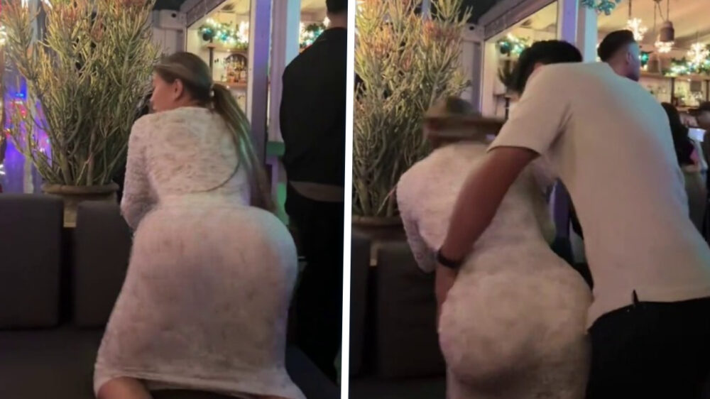 Niet iedereen heeft door dat twerken geen open sollicitatie is. Terwijl een dame vrolijk haar moves laat zien en haar achterwerk het werk doet, ziet een kerel zijn kans schoon om zonder uitnodiging achter haar te gaan staan en alvast wat handwerk te proberen.