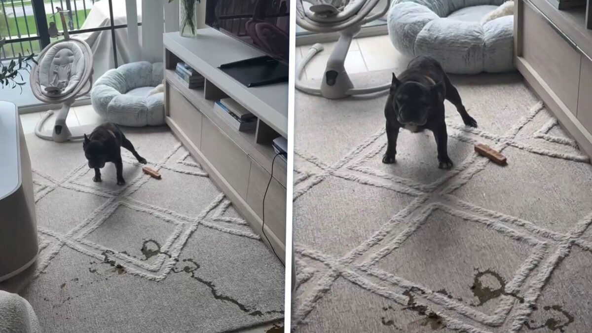 Hond had een zware dag en besloot interieur in een riool te veranderen