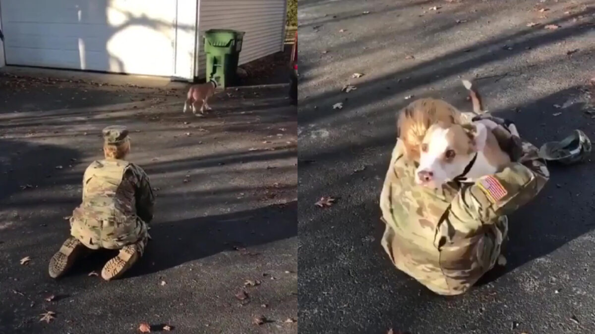Hond na lange tijd eindelijk weer herenigd met militaire bazin