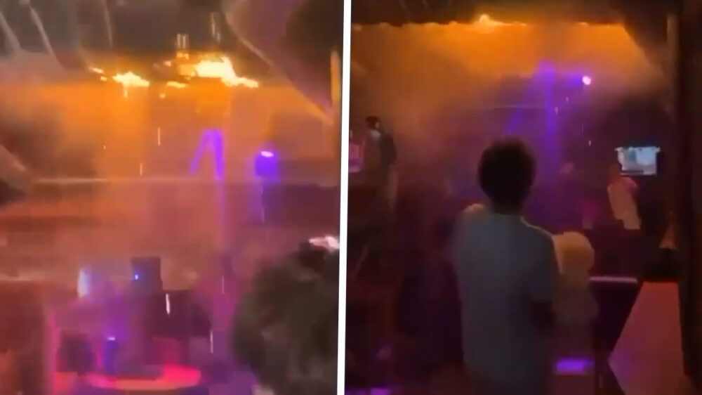 Beelden laten zien hoe vuurwerk plafond van Zwitsers café in lichterlaaie zet