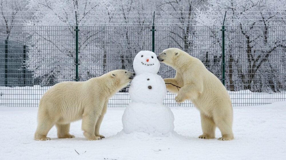 IJsberen in Eindhoven op een sneeuwpop met lading snacks getrakteerd