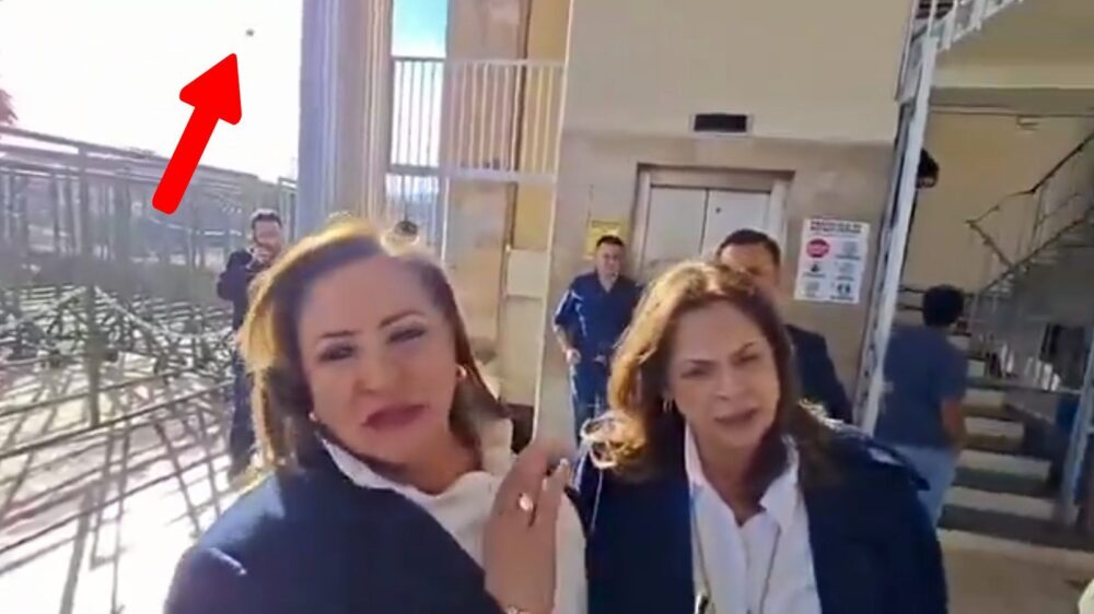 Ze sprak op dat moment met journalisten voor het Wetshuis toen een onbekend projectiel in haar richting werd gegooid en haar in de nek trof. Beelden laten zien hoe een rond voorwerp door de lucht vliegt, haar raakt en direct een oranje vlam doet opflakkeren naast haar hoofd.