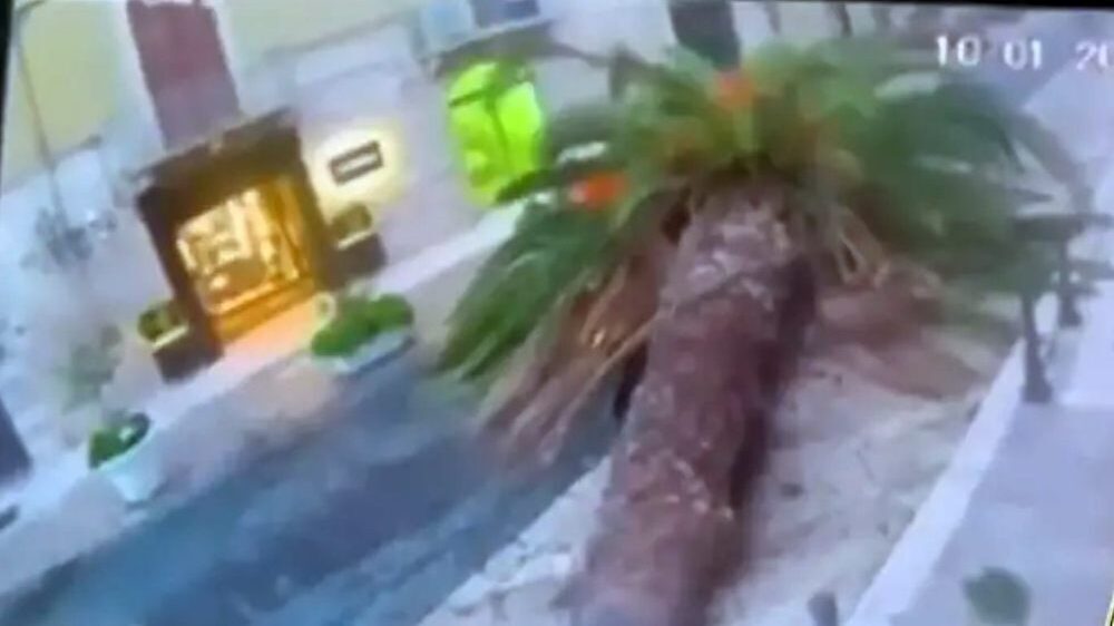 Instortende palmbomen raakt op een haar na een wandelaar in Italië