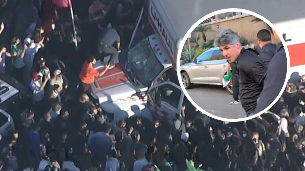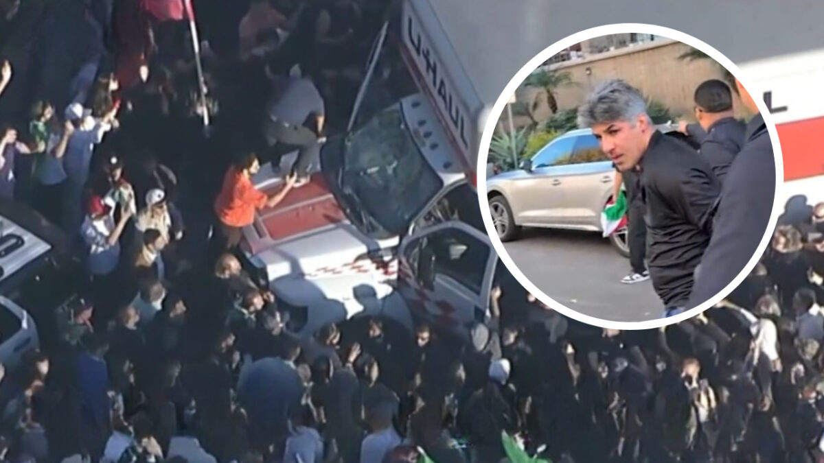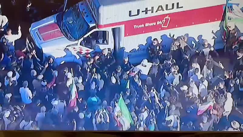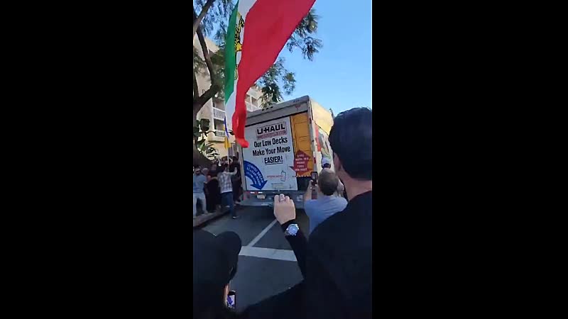 U-Haul rijdt dwars door protest tegen de Iraanse overheid in Los Angeles