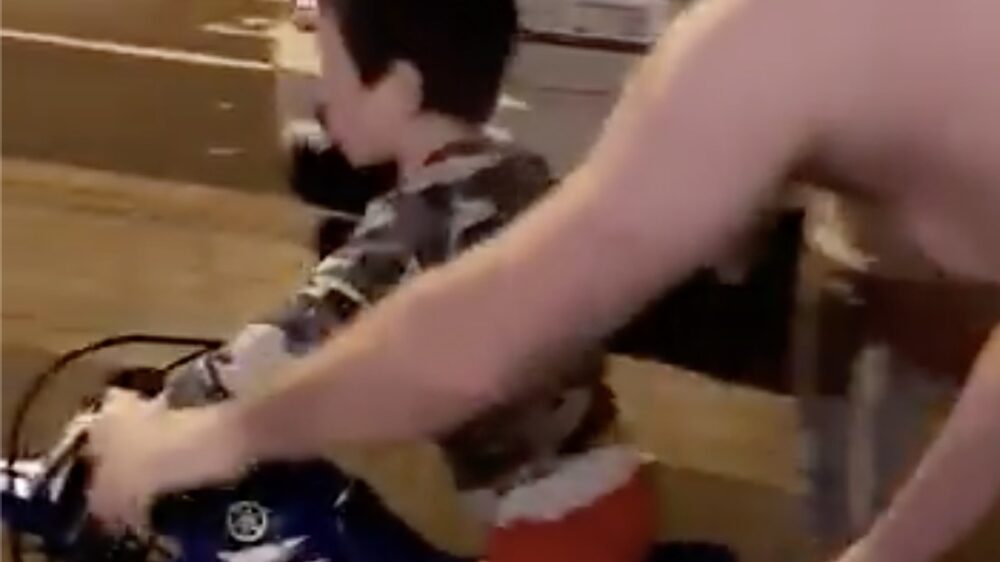 Beste idee van de week: je koter op een speelgoedmotor zetten Fails