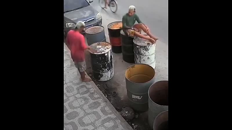 Twee knapen in het Braziliaanse Recife dachten dat het een goed idee was om met een aansteker bij een vat te kloten. Wat er precies in zat weet niemand, maar het effect was duidelijk genoeg. Een knal waar je wenkbrauwen spontaan van verschroeien en twee lichamen die even serieus airtime pakken. Woeiiii!