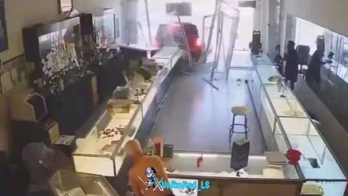 Beelden laten zien hoe een auto dwars door de pui van de juwelierszaak rijdt. Direct daarna rennen meer dan tien overvallers naar binnen, slaan vitrines kapot en graaien sieraden mee. Een van hen duwt de eigenaar tegen de grond. Een goede vriendin van de familie vertelt dat ze kort daarna bij de winkel aankwam. Zij zegt: "He is OK; business is not OK. Everyone knows that situation right now. Every business is in danger."