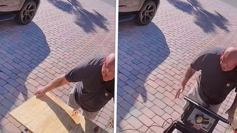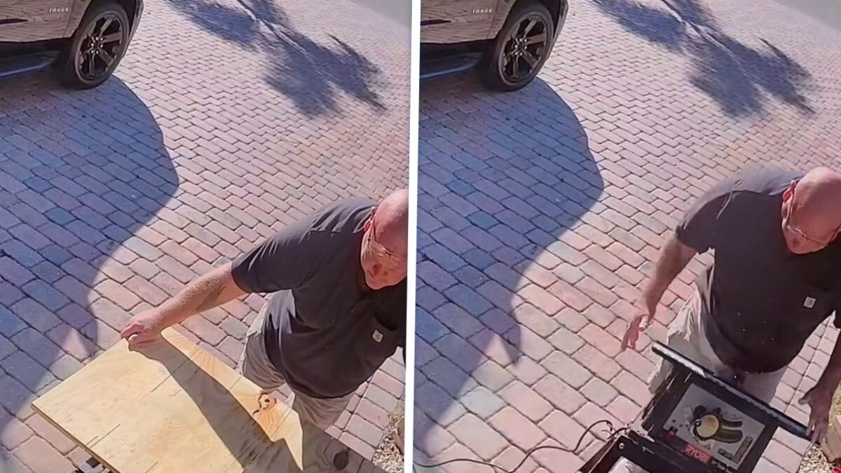 Deze doe-het-zelver was héél even onderweg naar een spontane geslachtsverandering. Tijdens een onschuldig potje klussen besloot de draagbare tafelzaag ineens terug te slaan alsof ’ie zelf ook toe is aan weekend. Terugslag is geen grapje, dat blijkt maar weer.