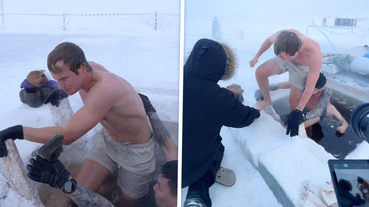 Vlogger Frank van Dam duikt in absurd koud ijsbad in Jakoetsk bij -52 graden