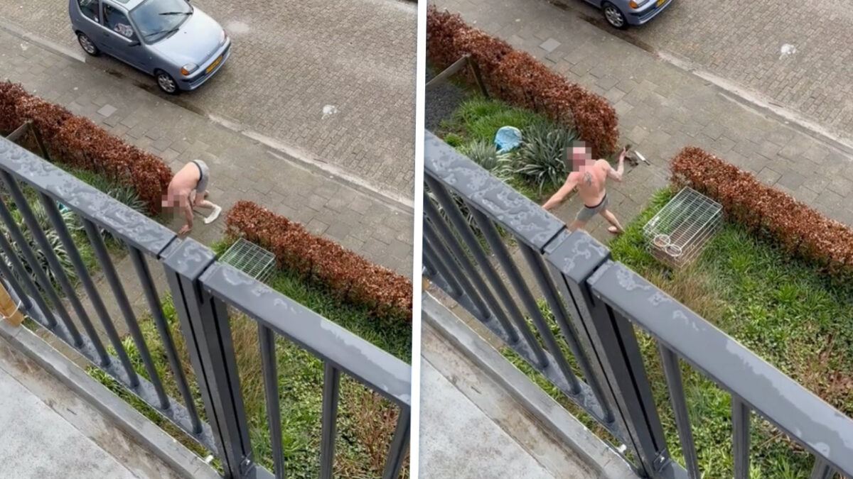 Een halfnaakte 'verwarde man', zichtbaar de weg kwijt, besloot dat het een prima dag was om met een mes te zwaaien en een baksteen richting andermans ramen te joekelen. Buurtbewoners kijken van een afstandje toe hoe hij een baksteen uit de stoep trekt en die door een ruit jankt. Benieuwd of de buurt-bbq net zo gezellig is.