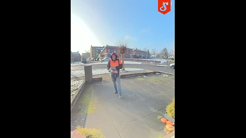 Hier zien we een postbode die z’n innerlijke rust ergens in de voortuin definitief is kwijtgeraakt. Komt het wellicht door alle troep in de voortuin, is het de kerstverlichting die er nog steeds hangt, wordt ’ie ineens geconfronteerd met de zoveelste deurbelcamera waar hij niet op zit te wachten of blokkeert de groene container de weg naar de brievenbus? We zullen het waarschijnlijk nooit weten.