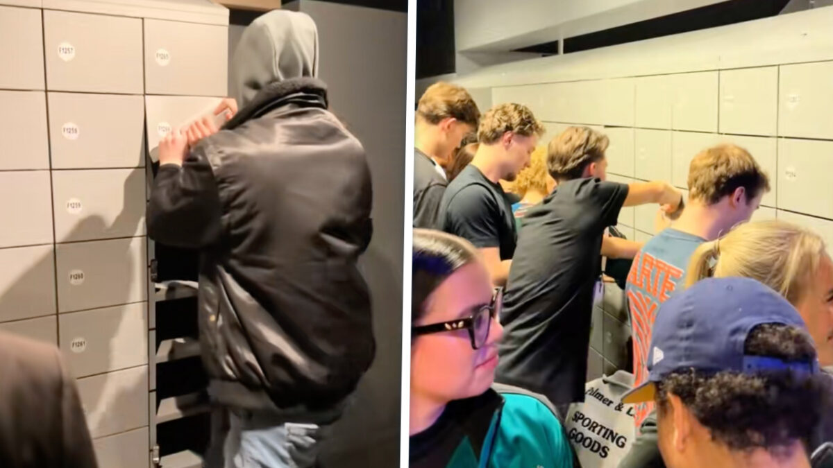 Naar verluidt worden dit soort kluisjes met je telefoon opengemaakt, maar aangezien het bereik en de wifi door de drukte totaal niet werkte, gingen die krengen natuurlijk ook niet open. Dus wat doen je dan als je geen zin hebt om zonder jas en sleutels naar huis te moeten? Juist, je breekt ze gewoon open.