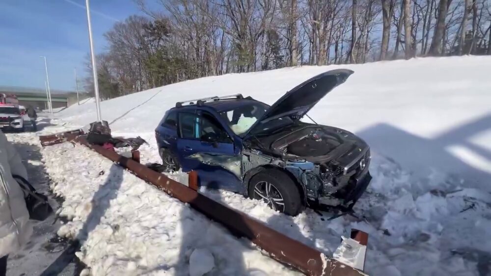 Hersenloze bestuurder duwt auto hard de vangrail in tijdens road rage