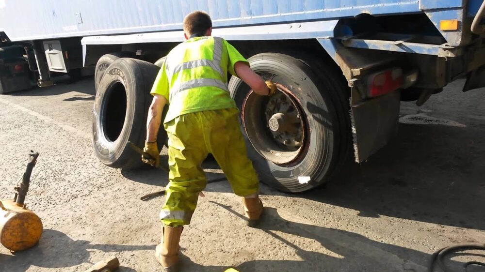 Een nieuwe band onder je vrachtwagen leggen stelt geen reet voor