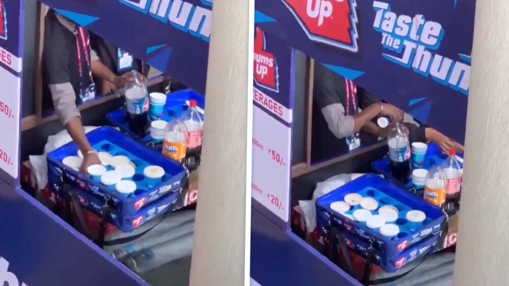 Een ranzige video uit het Arun Jaitley Stadium in Delhi zorgt online voor ophef over de hygiëne rond eten en drinken tijdens een T20 World Cupwedstrijd. In de clip, gefilmd door een toeschouwer, is een verkoper van een kraampje te zien die een grote fles frisdrank bijvult met leftovers uit bekers.