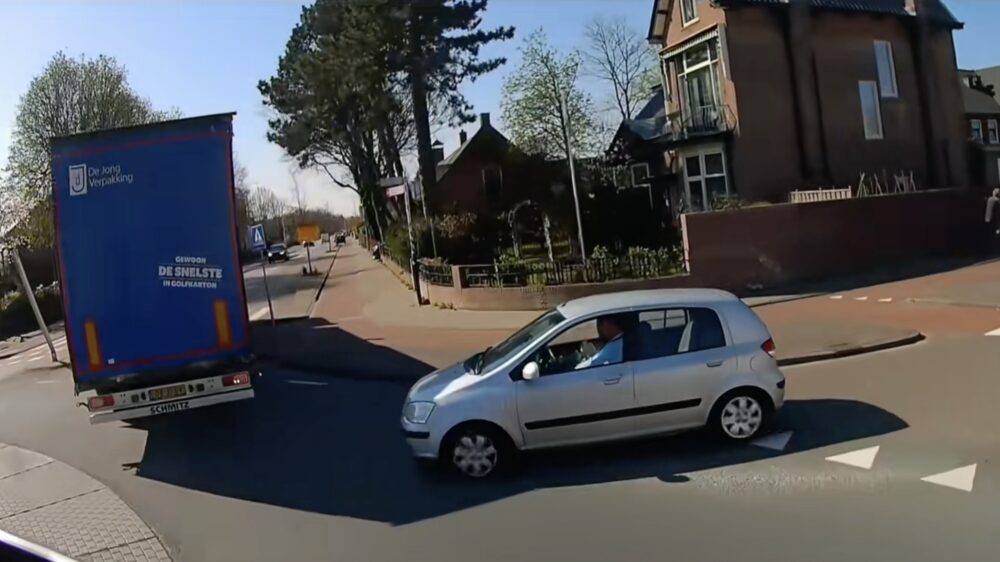 In een vlaag van verstandverbijstering besloot deze wegmisbruiker het uit te vechten met een vrachtwagen van 30 ton. Want als je 1.2 liter motorinhoud hebt, moet je dat blijkbaar compenseren met een grote bek en een hoop gebarentaal. Kijk en huiver hoe hij bijna in een platgedrukt pakketje Hyundai-schroot eindigt.