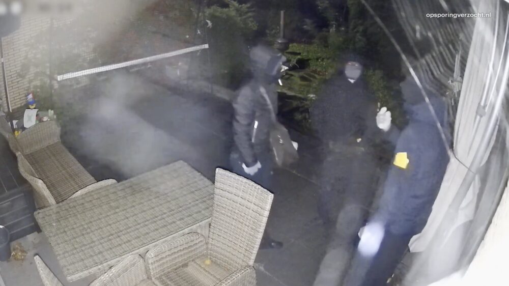 Op camerabeelden is te zien dat één van de drie daders een stuk groter is dan de andere twee. De merklogo’s op hun jassen waren afgeplakt met gele, reflecterende stickers.