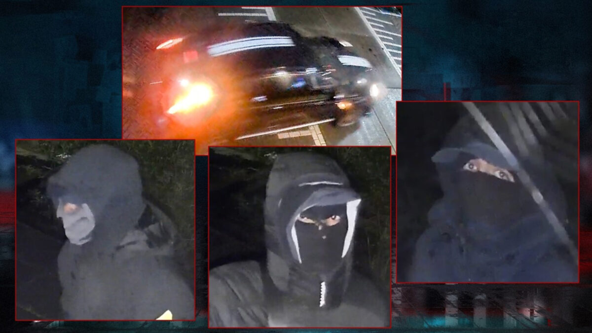 Op camerabeelden is te zien dat één van de drie daders een stuk groter is dan de andere twee. De merklogo’s op hun jassen waren afgeplakt met gele, reflecterende stickers.